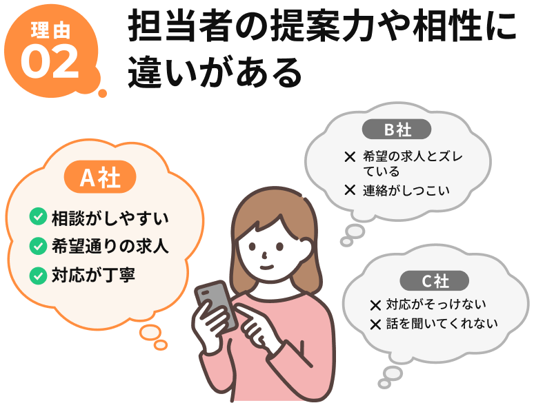 - 知り合いが利用していたので紹介してもらいました。無料で利用できますし、求人もたくさん紹介してくれるので使ってみて損はないと思います。