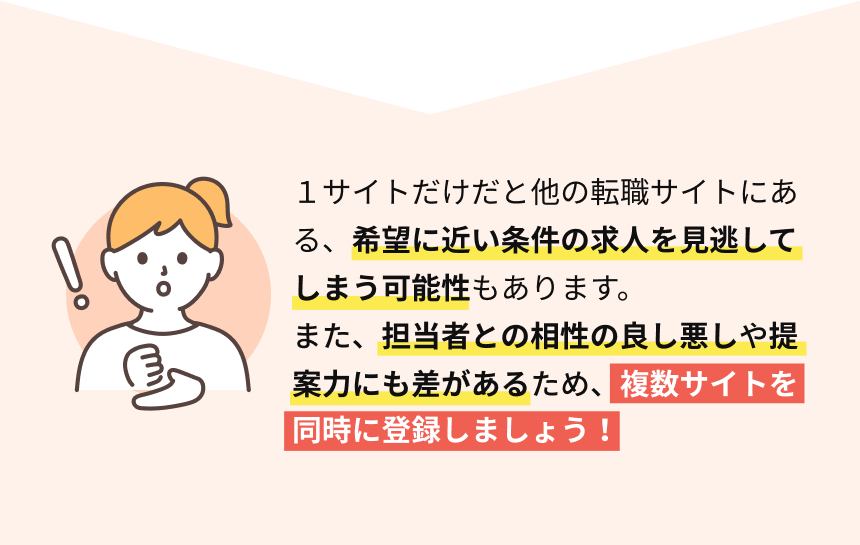 - 最初は自分で探しましたがなかなか見つからないのでサイトに登録してみました。すぐに求人紹介をしてくれたので忙しい人にはぴったりなサービスだと思います。